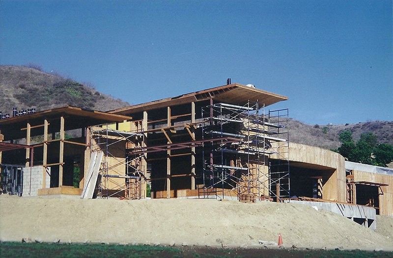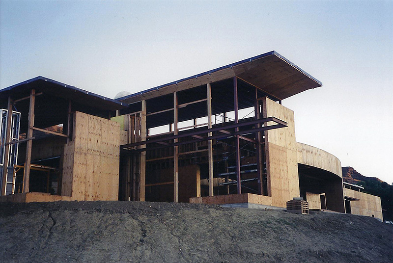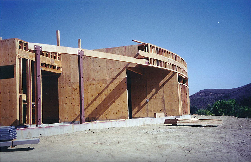 The Sharpe residence is an extreme modern glass home designed by Zoltan Pali of SPF: architects for Steve Sharpe. The 10,000 square foot home is located on a forty acre ranch in Somis California which is part of Ventura County. The home was designed with forty-one steel columns and seventy-five steel beams on a post-tension slab which rests on a certified pad. The Structural Engineer for this project was Bryce Richmond. In Preconstruction and during site work, Jack Phillips drew all the steel columns and beams in relationship to framing and concrete with elevations and dimensions above and below grade for architectural and structural approval. The preconstruction plan review and structural elevation drawings took about 90 days to complete. From drawings, Ventura Steel Detailing produced blueprints for structural engineer's approval and fabrication of steel columns and beams. By having a complete steel plan to bid from, steel bids were reduced from $270,000 to $71,000 respectively. The structural elevations with dimensions drawn by Jack Phillips saved the project more than $100K before construction ever started. The building philosophies of Jack Phillips are simple, "plan the build and build the plan." "If you can't draw it, then you can't build it." The plan is the only document on a building project that ties all the subcontractors and workers together. During preconstruction, all finish elevations of floors, doors, cabinets, counter tops, electrical, plumbing etc., are predetermined so the rough structure can be built to accommodate the homes finishes. This was a very difficult home to frame due to the number of beam connections and radiuses. After terminating two framing contractors due to incompetence and drug use, Jackson Construction ended up framing the home with a crew of 3rd year apprentices. Jack spent 2-1/2 years on this project completing the rough construction before moving on to another project. Steve Sharpe is the owner and founder of Sharpe Interior Systems, a large construction firm in the greater Los Angeles area that specializes in metal stud framing, drywall and complete interiors for commercial high rise buildings. Naturally, this home was finished by Sharpe Interior Systems. This was a very complicated home to build and took many years to complete.