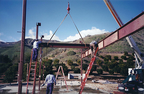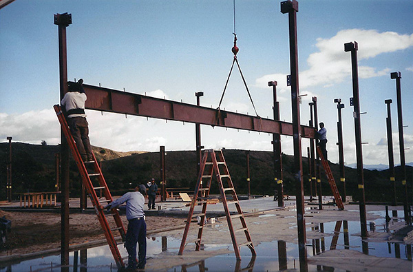 This picture shows Chapala Iron installing the W21x57 beam on Grid line 3.