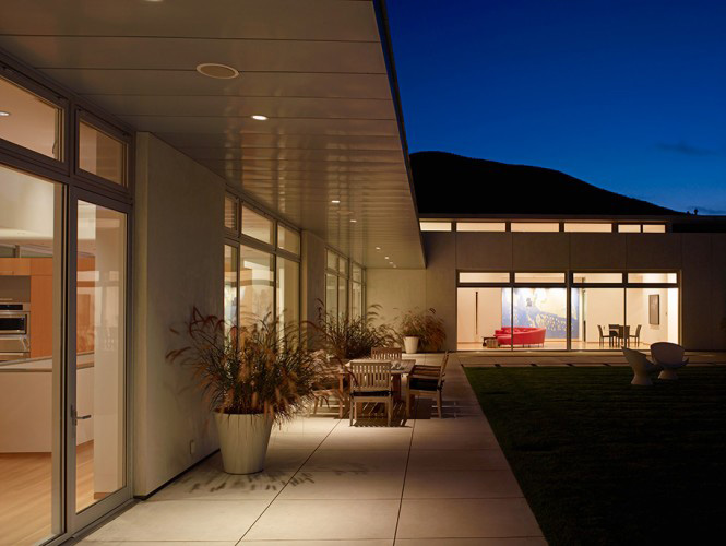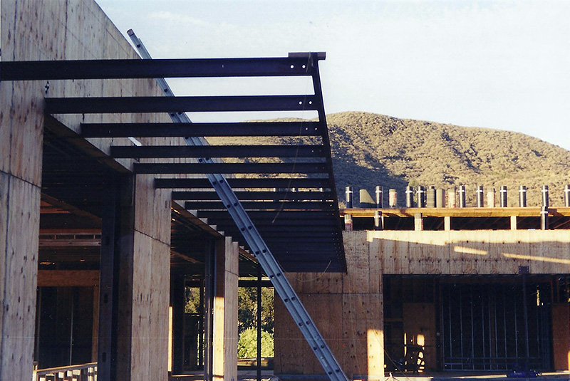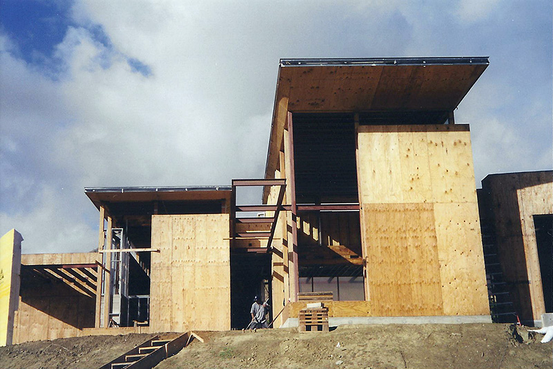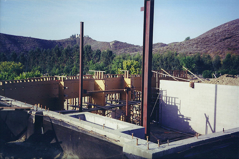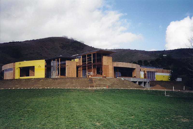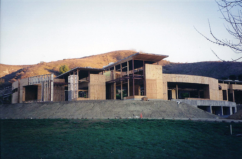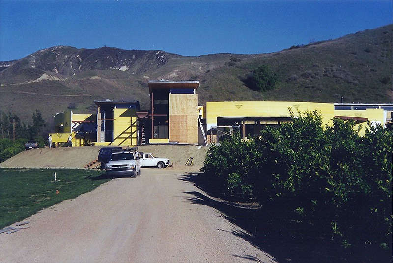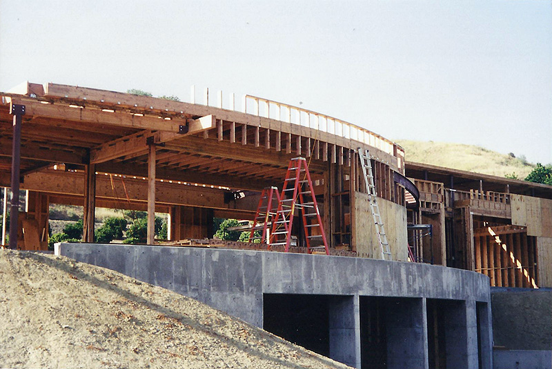 The Sharpe residence is an extreme modern glass home designed by Zoltan Pali of SPF: architects for Steve Sharpe. The 10,000 square foot home is located on a forty acre ranch in Somis California which is part of Ventura County. The home was designed with forty-one steel columns and seventy-five steel beams on a post-tension slab which rests on a certified pad. The Structural Engineer for this project was Bryce Richmond. In Preconstruction and during site work, Jack Phillips drew all the steel columns and beams in relationship to framing and concrete with elevations and dimensions above and below grade for architectural and structural approval. The preconstruction plan review and structural elevation drawings took about 90 days to complete. From drawings, Ventura Steel Detailing produced blueprints for structural engineer's approval and fabrication of steel columns and beams. By having a complete steel plan to bid from, steel bids were reduced from $270,000 to $71,000 respectively. The structural elevations with dimensions drawn by Jack Phillips saved the project more than $100K before construction ever started. The building philosophies of Jack Phillips are simple, "plan the build and build the plan." "If you can't draw it, then you can't build it." The plan is the only document on a building project that ties all the subcontractors and workers together. During preconstruction, all finish elevations of floors, doors, cabinets, counter tops, electrical, plumbing etc., are predetermined so the rough structure can be built to accommodate the homes finishes. This was a very difficult home to frame due to the number of beam connections and radiuses. After terminating two framing contractors due to incompetence and drug use, Jackson Construction ended up framing the home with a crew of 3rd year apprentices. Jack spent 2-1/2 years on this project completing the rough construction before moving on to another project. Steve Sharpe is the owner and founder of Sharpe Interior Systems, a large construction firm in the greater Los Angeles area that specializes in metal stud framing, drywall and complete interiors for commercial high rise buildings. Naturally, this home was finished by Sharpe Interior Systems. This was a very complicated home to build and took many years to complete.